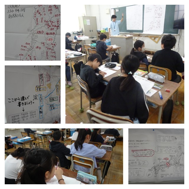 4年生の社会科の学習では、都道府県を歌で覚える活動をしました。その後、大阪府の市町村や周りの県、海などを調べています。覚えることがたくさんありますが、がんばって学習しています。