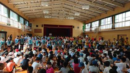 なかなか言葉が思いつかないチームもありましたが、高学年がヒントを出しながら、しりとりを回していました。