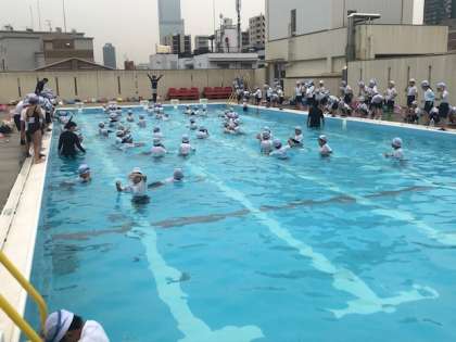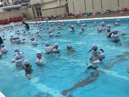 プールや海での遊びが増える夏休みに向けて、水の中で自分の身を守るための方法を学習しました。
