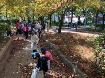 上汐公園へあきみつけに行きました。目で見て、音で聞いてたくさんの秋を見つけることができました。拾った落ち葉でお面を作りました。