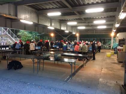 夕食のカレー作りをしています。この後、室内オリンピックをしてから入浴を行い、一日目の活動を終了します。明日は現地を13:00出発、16:20頃帰校予定です。現地出発時、赤松サービスエリア到着時、阪神高速池田入口通過時、法円坂出口通過時に保護者メールを送信します。また交通事情や気候の都合で予定の変更を行う際も、保護者メールを送信します。なお現地出発までの様子は学校ホームページでお知らせします。
