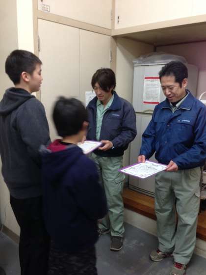 五条小学校を安全で過ごしやすい環境になるように気を配ってくださっている管理作業員の方に1年生から6年生の各学級でお礼の手紙を書いて、各学年の代表の子が管理作業員の方々に手紙を渡しました。各学年とも朝の登校の見守りのお礼など上手に伝えていました。
