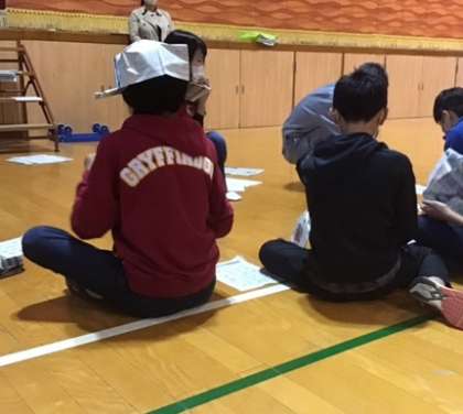 本日の午後から防災デーキャンプがおこなわれました。防災や減災についてのいろいろな体験をしたり、お話を聞いたりしました。子どもたちは普段できない体験に楽しんで取り組んでいました。