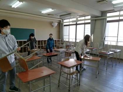 学校では新学期にむけていろいろな準備をしています。今日は給食についての研修、教室の環境整備などをおこないました。