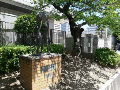 学校北側の柵が新しくなるに伴い、今まで学習園にあった石碑が正門横の植え込みに移動してきました。4月27日(火)には事務室とミーティングルームが職員室の隣にお引越しします。