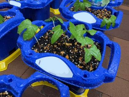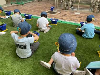 「めがでたよ!」「はっぱをさわったらふわふわしていたよ。」「はやくあさがお、さかないかな。」と、目を輝かせていました。