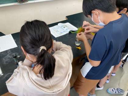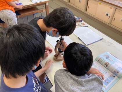 ひまわりの花粉を観察しました。プレパラートを自分たちで作り、顕微鏡の使い方の手順を確認しました。きれいにピントを合わせることができた時は、子どもたちから驚きの声が聞かれました。