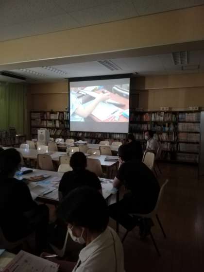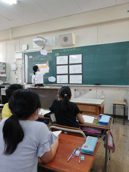 五条小学校は、算数科を中心に研究をすすめ授業力の向上に取り組んでいます。今日は3年生の「大きい数のかけ算の仕方を考えよう」の授業を録画の上、職員で視聴し、その後、授業についての振り返りを行いました。