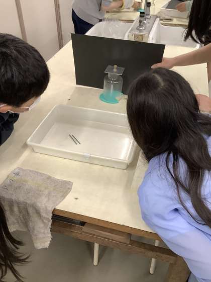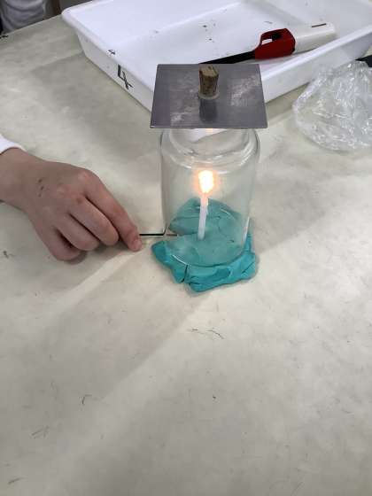 6年生は理科で「ものが燃えるしくみ」の学習をしています。理科室で実際にろうそくに火をつけて実験しました。実験をすることで、ものが燃えるには何が必要なのかなど、ものが燃えるしくみについて考えました。