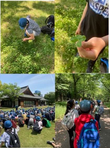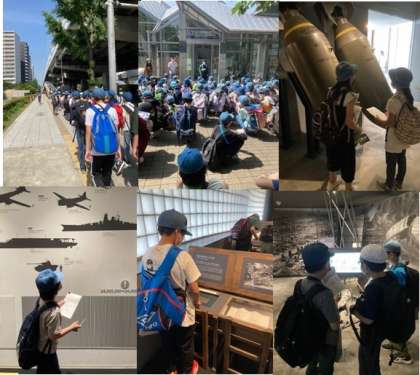 19日(水)、6年生が校外学習に行きました。ピース大阪では様々な展示をみて、昔、大阪でも戦争があったことを再確認したようです。その後、西の丸庭園で弁当を食べました。弁当の後は鬼ごっこをしたり、四つ葉のクローバーを探したりして楽しみました。午後からは大阪城の天守閣を見学しました。意外に初めて入場する子どもが多かったようです。帰りは少し疲れたようでしたが、元気に帰ってくることができました。