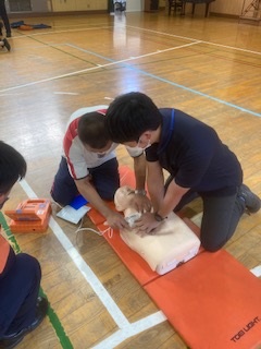 6月9日(木)の放課後、職員研修として天王寺消防署の方に来ていただいて、救命救急講習を実施しました。17日(金)から随時学年ごとにプール水泳が実施されることもあり、成人だけではなく子どもの胸骨圧迫の仕方も教えていただきました。