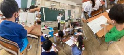 1年生は国語科で「おおきなかぶ」の学習をしています。みんなで音読した後、登場人物について学習しました。子どもたちは「大きい順に登場しているよ」など、自分たちが気付いたことを発表していました。