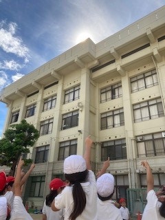 今日の5時間目、体育をしていた2年生が虹を見つけて教えてくれました。
