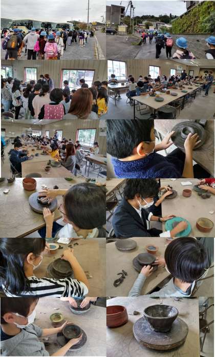 6年生は無事最初の目的地、信楽の宗陶苑に到着し、陶芸に挑戦しています。一人ひとり、いろいろな作品が出来上がったようです。