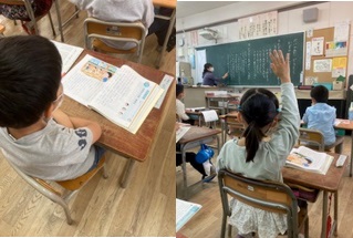 1年生が道徳で「かずやくんのなみだ」の学習をしていました。友だちとなかよくするためにはどうすればいいのか、自分の考えを発表していました。