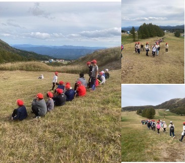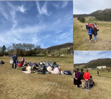 昼食後、高原ハイキングをしました。ちょうどいい気候の中、山の中腹まで登りました。斜面で転がったり、虫をとったり、自然の中でいっぱい遊びました。この後はカレー作りをします。