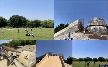 4年生が校外学習で大泉緑地いきました。春の植物を観察しながら、公園内を歩き、お弁当を食べた後は、大きな滑り台で遊びました。少し暑いぐらいでしたが天候にも恵まれ、楽しむことができたようです。