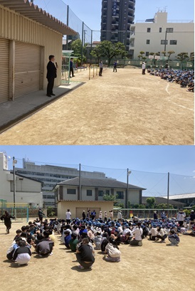 5月2日に、4月27日に雨で延期となった火災に備えた避難訓練を実施しました。大人数の子どもが一斉に避難することになりますが、多くの子どもが指示をしっかり聞いて、静かに避難することができていました。