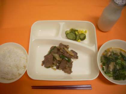 プルコギ、トック、きゅうりとコーンの甘酢あえ、ごはん、牛乳