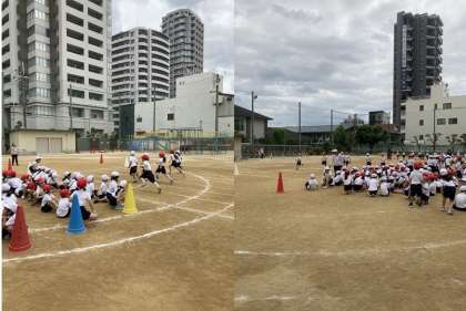 6月4日は体育発表会です。先週の金曜日、1年生が個人走の練習をしていました。あくまで練習ですが、自分が一生懸命走るのはもちろん、「がんばれ」などの声援があがっていました。