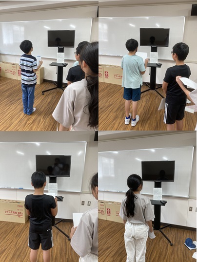 6月14日の人権集会では、6年生の4人が代表で自分たちが学習してきたことを発表します。今日の昼休み、明日の発表のための練習をしました。