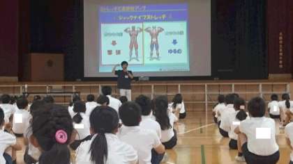 本校では毎年保健に関するテーマで講師をお招きし、児童、教職員、PTAが集まり話を聞いています。今年は、6年生の児童と、5年生の健康委員会の児童が参加し、森ノ宮医療学園より、朝倉智仁先生を講師にお招きし、実技を交えたストレッチの話を聞きました。運動は苦手でも体を動かす気持ちよさがあることや、スモールステップの達成感などを教えていただきました。