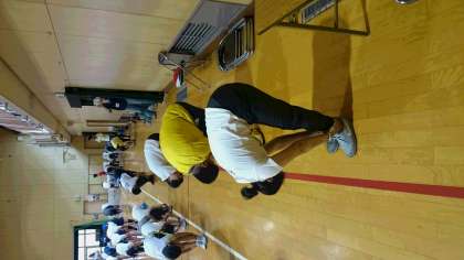 筋肉を曲げたり、伸ばしたり、バランスをとったり、自分の限界にチャレンジする子どもたちと、負けじと頑張る教職員でした。ご参加いただいたPTAの皆様いかがだったでしょうか。ご協力ありがとうございました。