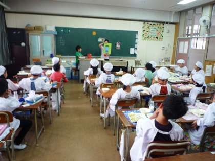 各クラス三日間、子どもたちの「ミルちゃ〜〜ん!」の掛け声とともに、給食のお話をしてくれます。