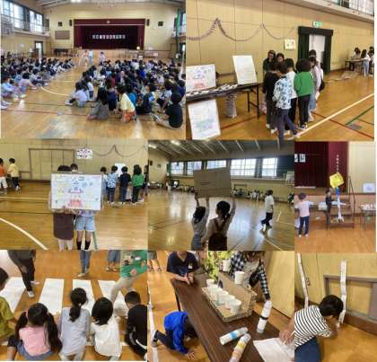 2年生が生活科の学習で作ったおもちゃを使って、「おもちゃランド」をつくり1年生を招待しました。五条まつりではお客だった2年生ですが、1年生を相手にそれぞれで「お店」を開き、1年生がゲームをうまくクリアできた時は、一緒になって喜んでしました。自分たちで作ったおもちゃで楽しそうに遊んでいる姿を見て、2年生も楽しかったようです。