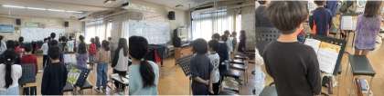 5年生が音楽の授業で「夢の世界」という曲を合唱していました。