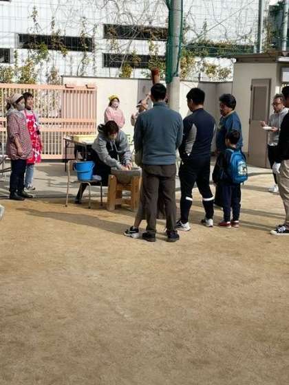 今日は、PTAや地域の方々が来週日曜日にある餅つき大会のリハーサルを行いました。もち米を蒸す時間やついた餅は何人分食べられかを計算しながら行いました。当日が楽しみです。