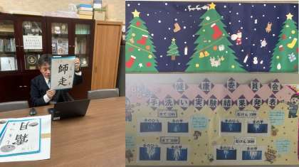12月になりました。玄関の掲示がクリスマスになりました。また風邪がはやる時期なので、手洗いの掲示にも力を入れています。12月1日の児童放送では校長先生より「師走」についてのお話がありました。
