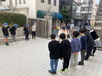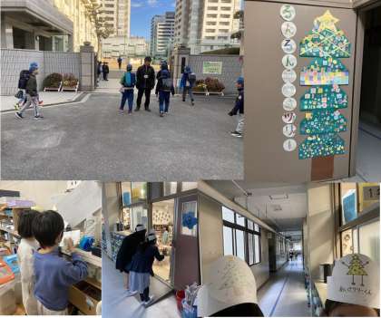 12月11日〜15日まで「あいさつ週間」を実施しました。その間、運営委員会の児童は正門での挨拶、給食時間の放送など大活躍でした。最終日はお面をつけてあいさつにまわり、1年生は大喜びでした。1週間のあいさつ運動の後、大きな「あいさツリー」が完成しました。