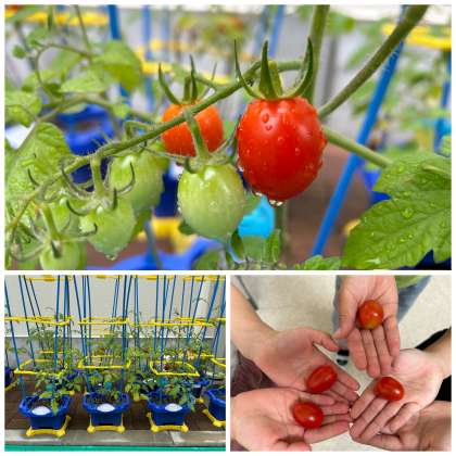 2年生が生活科の学習で育てているミニトマトの実がなり始めました。徐々に大きくなり、赤く色づく実を、しっかり観察しました。