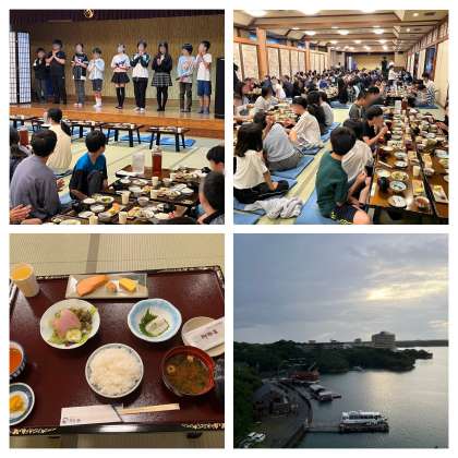 6年生の修学旅行は2日目の朝を迎えました。朝食をとり、部屋の掃除をしたあと、鳥羽水族館に向かいます。