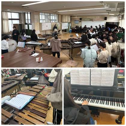 音楽科の学習の様子です。6年生は合奏の練習に取り組んでいます。練習を重ねることで、自分のパートをただ演奏するだけでなく、それぞれの楽器の音を感じながら指揮に合わせることで、みんなの音がひとつになってきました。