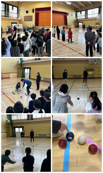 昨年度に続き、今年も3年生が五条地域活動協議会の方に「ボッチャ」を教えていただきました。自分の投げたボールがジャックボール(目標玉)に近づいたり、相手のボールにあたって、相手ボールが目標玉から遠ざかると大歓声が上がっていました。五条地域活動協議会の皆様、寒い中、子どもたちに貴重な体験を提供していただき本当にありがとうございました。