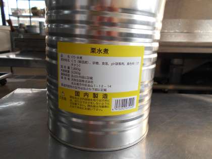 3枚目がくり(水煮缶)です。給食ではくりの甘露煮ではなく、水煮のものを使用しています。