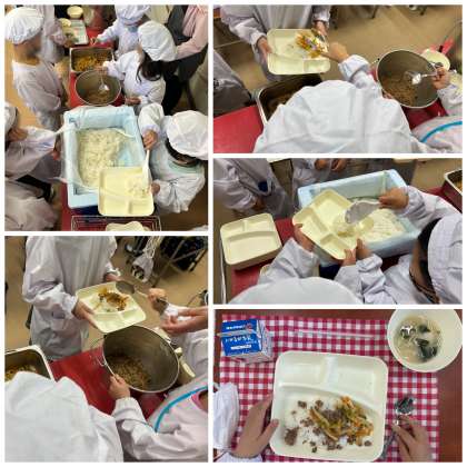 入学式からもうすぐ3週間がたちます。給食の準備の仕方にも慣れ、給食当番をがんばっています。