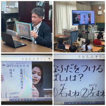 9日(金)に児童放送を行いました。運営委員会の児童のお知らせ、校長先生のお話に続いて、生活指導の話として今月の生活目標である「五条のきまりを守ろう」について担当の先生からお話がありました。「校内では名札を付けること」などの様々なきまりについて、クイズを通して確認しました。