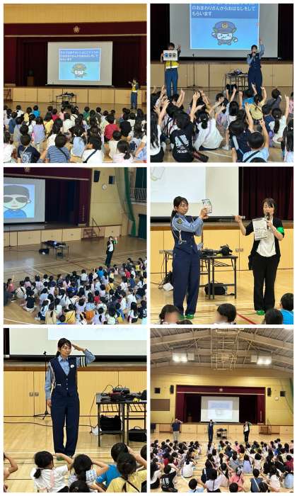 天王寺区役所と天王寺警察署の方に来ていただいて、「こどもあんぜんきょうしつ」を開いていただきました。不審者への対応や交通安全など、自分の安全を守ることについて、様々なことを教えていただきました。