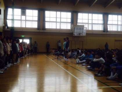 6年生代表による挨拶に対して、礼儀正しく「よろしくお願いします。」と返事をするかしこい1年生の姿を見せました。