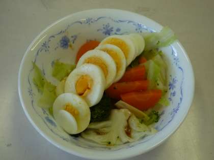 ゆで卵とカラフルゆで野菜をつくりました。安全面や衛生面に気を配り、火加減調節やエコを考えながら、調理することを学びました。準備や片づけも協力し合って、上手にすることができました。