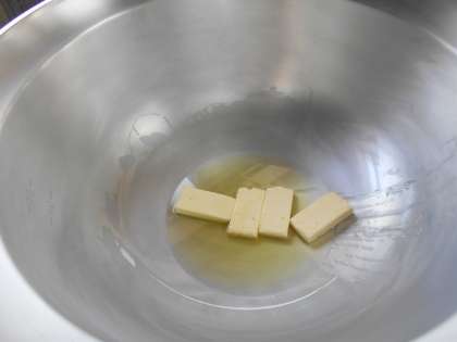 2枚目が釜に入ったバターとサラダ油です。この後小麦粉を振り入れて弱火で十分いためました。