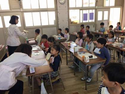 2年生で、歯科校医と歯科衛生士による、歯みがき指導を実施しました。