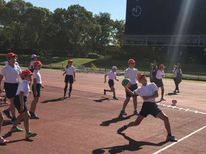 本日、長居陸上競技場にて天王寺区スポーツ交歓会が行われました。午前中はサッカーとドッヂボールを行いました。各クラスとも健闘しましたが、3クラスすべてドッヂボールは敗退してしましました。他校のボールがあまりに速く、帰り道に「恐怖のドッヂボール」だったと嘆いていました笑