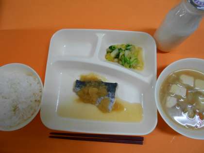 さごしのおろしじょうゆかけ、けんちん汁、はくさいのおひたし、ごはん、牛乳