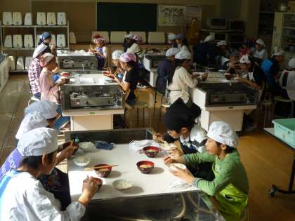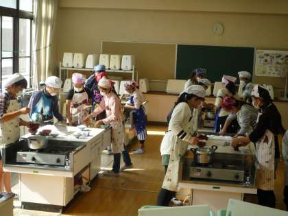 11月16日(水)・17日(木)の調理実習では、ご飯とみそしるをつくりました。状態を見ながら火加減調節をしたり、沸騰を確認しながら手順を考え、手際よく入れたりすることに気を配りながら、友だちと協力し合っておいしくつくることができました。