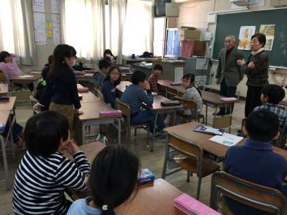 1月18日(水)の2,3時間目に「昔のくらし」についての学習をしました。地域の方々に来ていただき、戦争のころの話や昔のくらしについての話をしていただきました。自分たちのくらしと比べて驚いたり、疑問に思ったことなどを質問したりして興味をもって学習することができました。