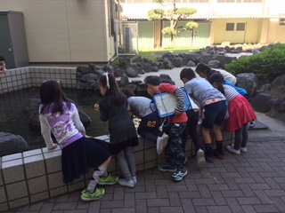 手をつないで、各教室の説明や、五条小学校のきまりなどを優しく教えてあげることができました。